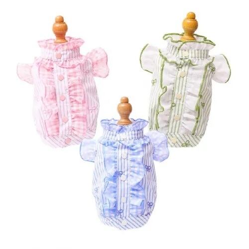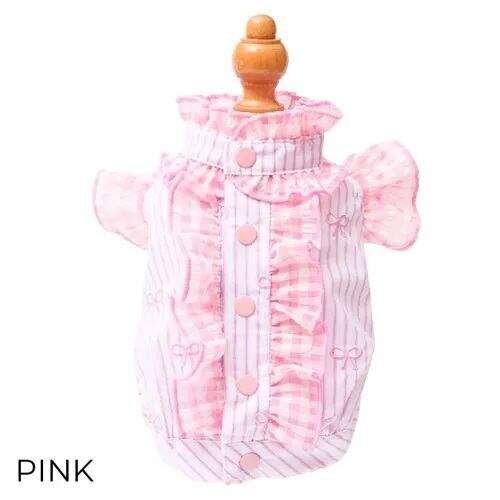 爽やかなストライプ生地に、繊細なリボン刺繍をあしらい、ギンガムチェックのフリルとチュールを重ねることで、軽やかで立体感のあるシルエットに仕上げました。