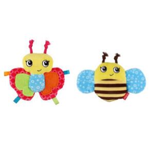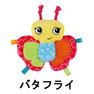 □くわえたり振り回しやすい羽根がついていて、羽根の中にはカシャカシャ音が楽しいクリンクル素材が入っています。
