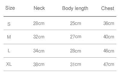 商品サイズの選択の際、胸囲と首周りはペットの測定サイズより1〜2cm余裕を持ってお選びください。